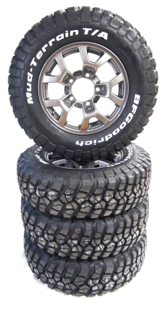 これらのタイヤを装備することで、1インチ程度のサイズアップが期待できます。ショックなどでリフトアップせずに、気軽に車高を高くする方法です。